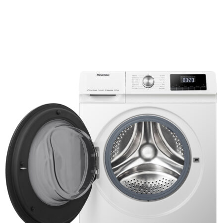 HisenseHisense WDQA8014EVJM, Voorbelading, Vrijstaand, Wit, Links, Zwart, Draaiknop, Touch