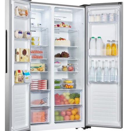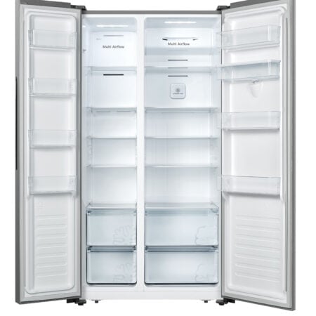 Fridgemaster MS91520ES. Apparaatplaatsing: Vrijstaand, Productontwerp: Amerikaanse deur, Kleur van het product: Zilver. Totale nettocapaciteit: 519 l, Klimaatklasse: N-ST, Geluidsemissieklasse: D. Nettocapaciteit koelkast: 334 l, Soort lamp: LED. Nettocapaciteit vriezer: 185 l, Vriezer positie: Ernaast, Vriescapaciteit: 11 kg/24u. Snoerlengte: 2 m