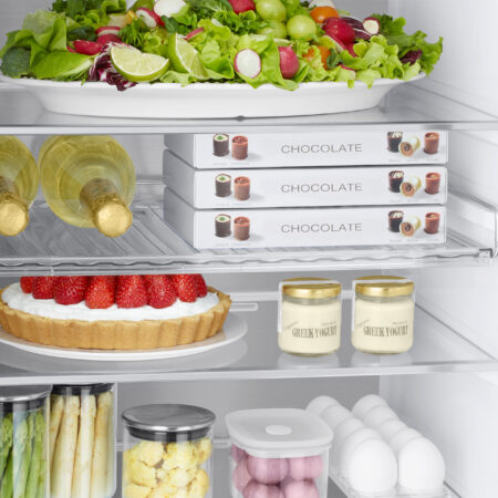 Maak je schappen vrij en bewaar grotere flessen in de deur. Doordat de deurvakken breder en dieper zijn dan die van standaard koelkasten, kunnen ze veilig worden opgeslagen. Ideaal voor toegang tot je favoriete drankjes op elk moment.