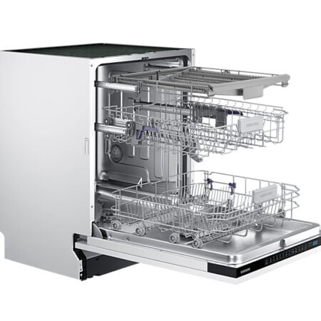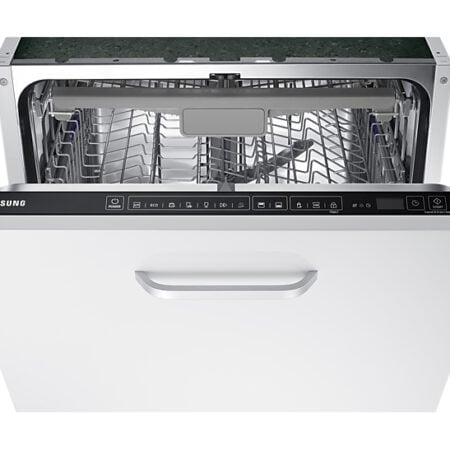 Samsung DW60M6031BB. Apparaatplaatsing: Volledig ingebouwd, Productafmeting: Volledige grootte (60 cm), Deurkleur: Wit. Aantal couverts: 14 couverts, Geluidsemissieklasse: B, Geluidsniveau: 44 dB. Backlight-kleur: Blauw. Energie-efficiëntieklasse: E, Waterconsumptie per cyclus: 10,5 l, Energieverbruik per 100 cycli: 95 kWu. Breedte: 598 mm, Diepte: 550 mm, Hoogte: 815 mm