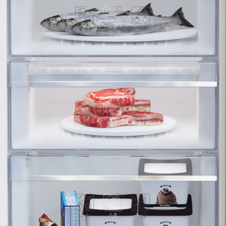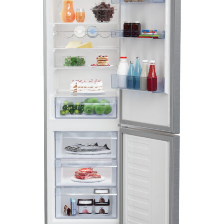 Beko RCSA366K40XBN. Totale nettocapaciteit: 343 l. Deurscharnieren: Rechts. Klimaatklasse: SN-ST, Geluidsniveau: 38 dB. Nettocapaciteit koelkast: 223 l, Aantal planken koelkast: 4, Aantal groente lades: 1. Nettocapaciteit vriezer: 120 l, Vriescapaciteit: 5,5 kg/24u. Energie-efficiëntieklasse: E, Jaarlijks energieverbruik: 243 kWu. Kleur van het product: Grijs