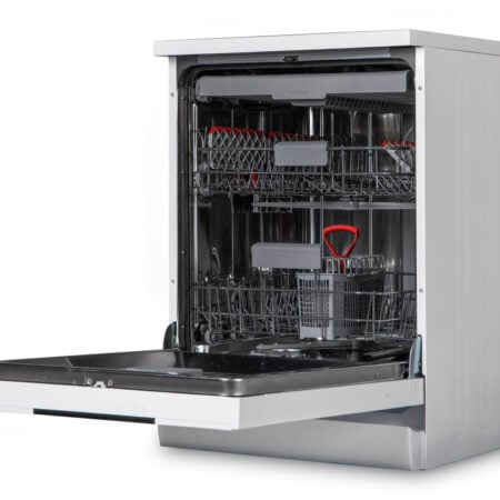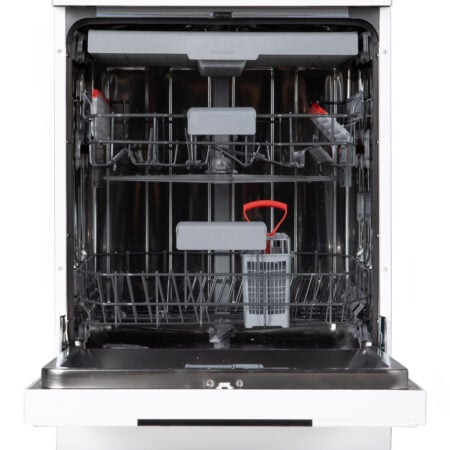 Sharp QWNA1DF45EWEU. Apparaatplaatsing: Vrijstaand, Productafmeting: Volledige grootte (60 cm), Deurkleur: Wit. Aantal couverts: 15 couverts, Geluidsemissieklasse: C, Geluidsniveau: 45 dB. Energie-efficiëntieklasse: E, Waterconsumptie per cyclus: 9 l, Energieverbruik per 100 cycli: 97 kWu. Breedte: 598 mm, Diepte: 598 mm, Hoogte: 850 mm. Breedte verpakking: 644 mm, Diepte verpakking: 661 mm, Hoogte verpakking: 881 mm