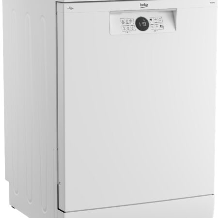 Beko BDFN26430WC. Apparaatplaatsing: Vrijstaand, Productafmeting: Volledige grootte (60 cm), Deurkleur: Wit. Aantal couverts: 14 couverts, Geluidsemissieklasse: B, Geluidsniveau: 44 dB. Energie-efficiëntieklasse: D, Waterconsumptie per cyclus: 9,5 l, Energieverbruik per 100 cycli: 85 kWu. Breedte: 59,8 mm, Diepte: 600 mm, Hoogte: 850 mm. Breedte verpakking: 644 mm, Diepte verpakking: 661 mm, Hoogte verpakking: 889 mm