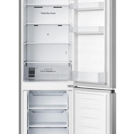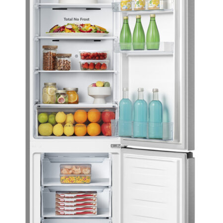 Hisense RB329N4ACE. Totale nettocapaciteit: 255 l. Deurscharnieren: Rechts. Klimaatklasse: N-ST, Geluidsniveau: 40 dB. Nettocapaciteit koelkast: 188 l, No Frost (koelkast), Multi-luchtwegsysteem (koelkast), Koelkast binnenverlichting, Aantal planken koelkast: 4. Nettocapaciteit vriezer: 67 l, Vriescapaciteit: 4 kg/24u, No Frost (vriezer). Energie-efficiëntieklasse: E, Jaarlijks energieverbruik: 215 kWu. Kleur van het product: Roestvrijstaal