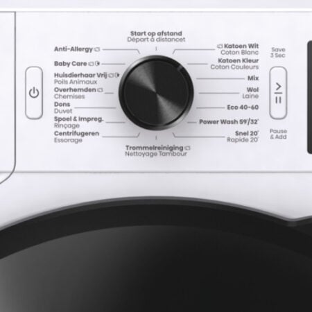 Deze nieuwe superhandige Snelle wasbeurt-functie verkort elk programma in het menu. Zelfs het Power Wash programma, dat normaal 59 minuten duurt. Met de geactiveerde Snelle wasbeurt-functie duurt het maar 32 minuten. Bespaart tijd en geld en heeft geen invloed op de wasefficiëntie.