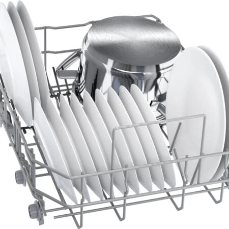 Bosch Serie 4 SPS4EMI61E. Apparaatplaatsing: Vrijstaand, Productafmeting: Slimline (45 cm), Deurkleur: Roestvrijstaal. Aantal couverts: 10 couverts, Geluidsemissieklasse: C, Geluidsniveau: 45 dB. Bedieningsapps ondersteund: Bosch Home Connect. Energie-efficiëntieklasse: D, Waterconsumptie per cyclus: 6,7 l, Energieverbruik per 100 cycli: 67 kWu. Breedte: 450 mm, Diepte: 600 mm, Hoogte: 845 mm