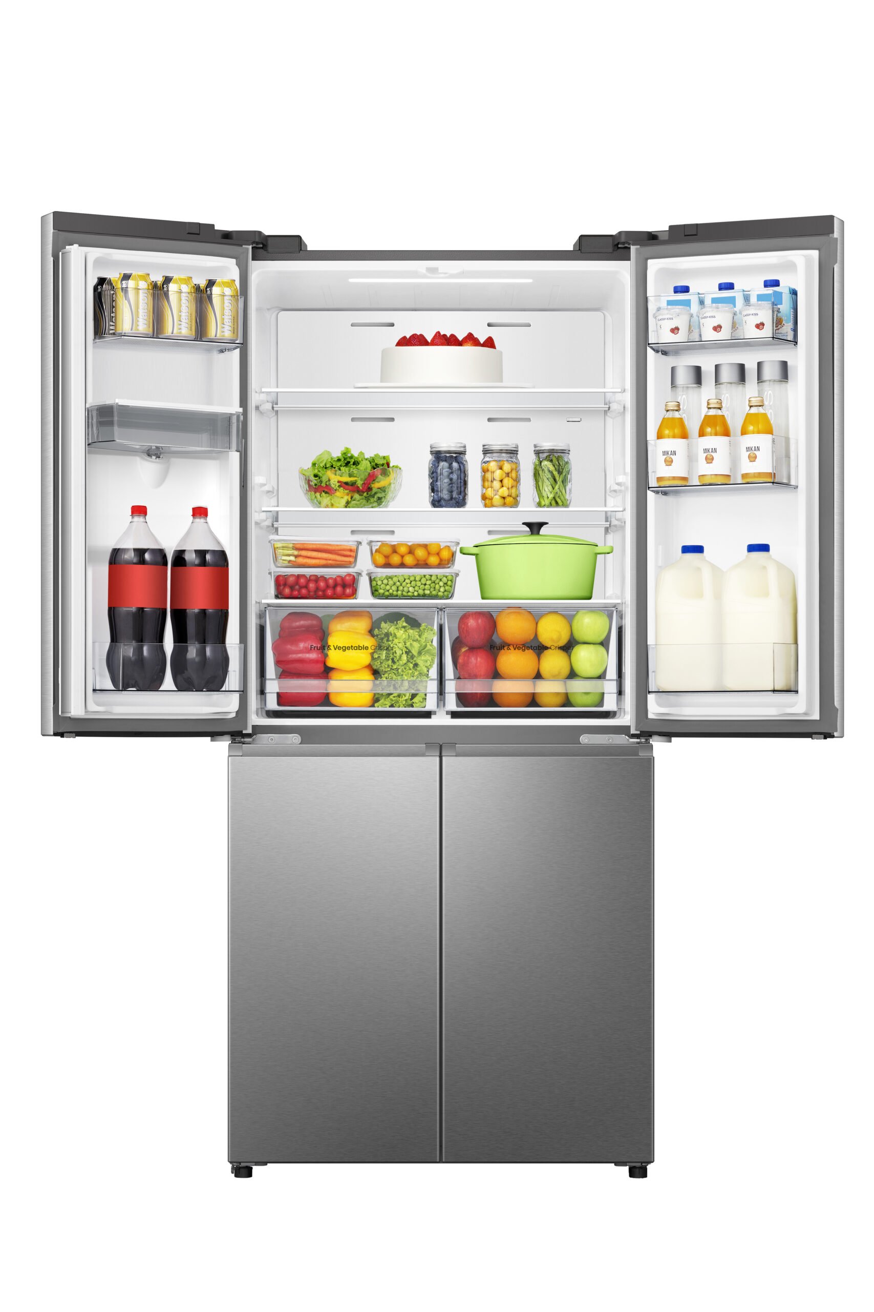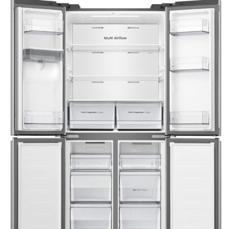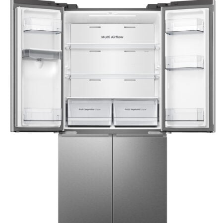 Hisense FMN470W20E. Totale nettocapaciteit: 482 l. Deurscharnieren: Links, Type beeldscherm: LED. Klimaatklasse: SN-T, Geluidsniveau: 37 dB. Nettocapaciteit koelkast: 303 l, No Frost (koelkast), Multi-luchtwegsysteem (koelkast), Koelkast binnenverlichting. Nettocapaciteit vriezer: 179 l, Vriescapaciteit: 8 kg/24u, No Frost (vriezer). Energie-efficiëntieklasse: E, Jaarlijks energieverbruik: 293 kWu. Kleur van het product: Roestvrijstaal