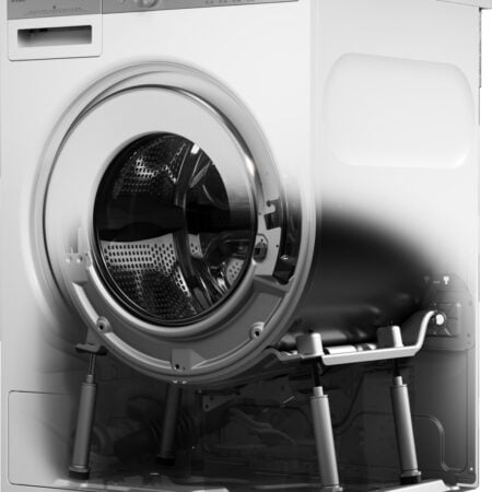 De meeste fabrikanten stabiliseren hun wasmachines met beton. Wij verstevigen en stabiliseren onze wasmachines met robuuste gietijzeren contragewichten aan de voorzijde en een gietijzeren lagerkruis aan de achterzijde. Een ASKO is daardoor sterker, stabieler en duurzamer.