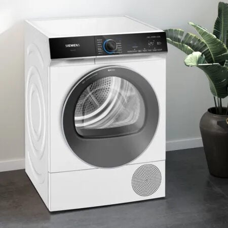 Siemens iQ700 WQ46B2D41. Apparaatplaatsing: Vrijstaand, Type lader: Voorbelading, Droogsysteem: Warmtepomp. Nominale capaciteit: 9 kg, Condensatie-efficiëntieklasse: B, Droogprogramma’s: Blouse/shirt, Katoen, Cotton eco, Hygiëne/anti-allergie, Lingerie, Mix, Kussen, Sport,…. Voetenverstelling: 1,5 cm, Bedieningsapps ondersteund: Siemens Home Connect. Energie-efficiëntieklasse: B, Energieverbruik per 100 cycli: 92 kWu, Jaarlijks energieverbruik: 0,92 kWu. Siemens-technologieën (kledingzorg): Home Connect, intelligentDry, selfCleaning Condenser