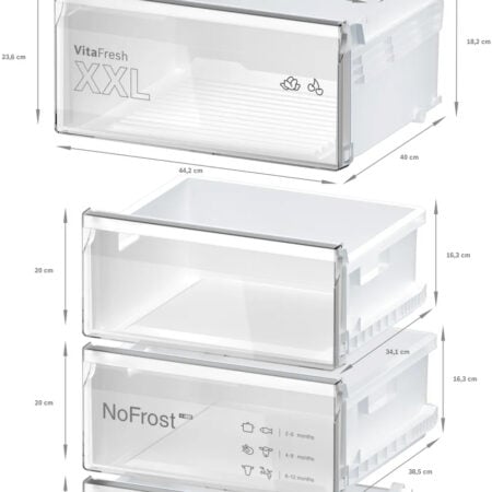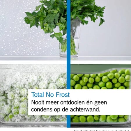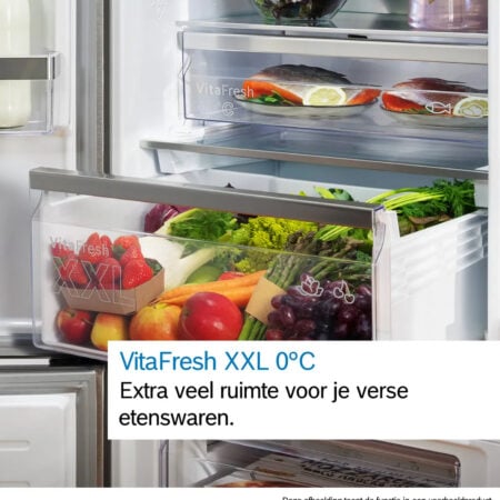 Het VitaFresh-systeem zorgt met temperatuur- en luchtvochtigheidsregeling voor de ideale omgeving voor al je verse etenswaren. Vis en vlees blijven langer vers bij een temperatuur die net boven het vriespunt van 0 °C blijft. Groente en fruit profiteren van een optimaal klimaat.Meer genieten en minder eten verspillen.