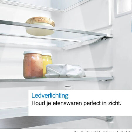 Met ledverlichting zie je niets over het hoofd in je koelkast. Duurzame, energiezuinige leds verlichten de gehele koelkast helder en gelijkmatig, zodat de inhoud duidelijk zichtbaar is. Beschikt je koelkast over Home Connect-technologie, dan kun je de ledverlichting via de app bedienen. Schakel het licht eenvoudig aan of uit of pas de helderheid naar wens aan via je mobiele apparaat. Laat slecht licht je niet belemmeren om te vinden wat je nodig hebt – upgrade je koelkast vandaag nog met ledverlichting.
