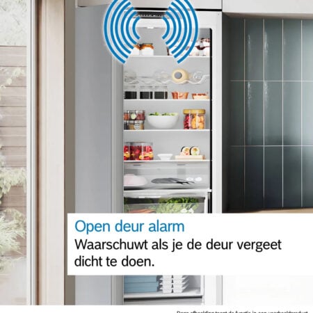De koelkast of vriezer geeft een waarschuwingssignaal wanneer de deur niet goed dicht zit. Zo verspil je geen etenswaren en energie.