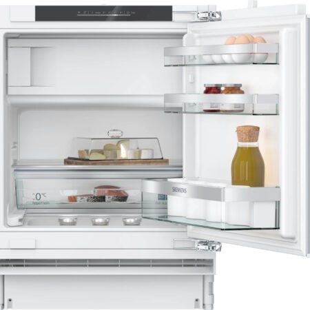 Siemens iQ500 KU22LADD0. Apparaatplaatsing: Onderbouw, Deurscharnieren: Rechts, Soort bediening: Touch. Totale nettocapaciteit: 110 l, Klimaatklasse: SN-T, Geluidsemissieklasse: B. Nettocapaciteit koelkast: 93 l, Soort lamp: LED. Vriezer positie: Boven, Nettocapaciteit vriezer: 17 l, Vriescapaciteit: 3 kg/24u. Snoerlengte: 2,3 m