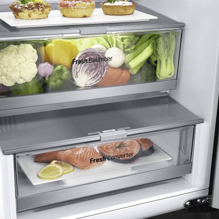 | LG-technologieën (voedselopslag) | DoorCooling+™, FRESHBalancer™, FreshConverter™, LINEARCooling™, Multi-Air Flow, Smart Diagnosis, Smart Inverter Compressor™, Total No Frost |