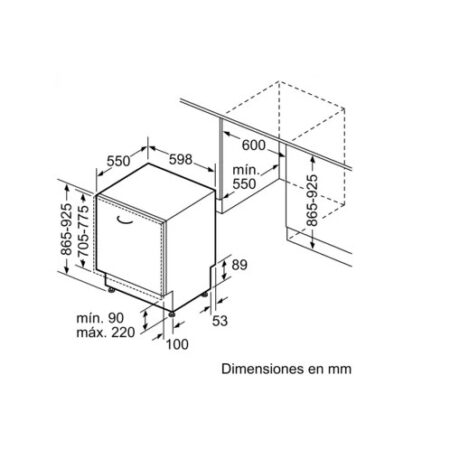 Siemens iQ500 SX65ZX49CE. Apparaatplaatsing: Volledig ingebouwd, Productafmeting: Volledige grootte (60 cm), Kleur bedieningspaneel: Zwart. Aantal couverts: 14 couverts, Geluidsemissieklasse: B, Geluidsniveau: 42 dB. Energie-efficiëntieklasse: C, Waterconsumptie per cyclus: 9,5 l, Energieverbruik per 100 cycli: 75 kWu. Breedte: 598 mm, Diepte: 550 mm, Hoogte: 865 mm