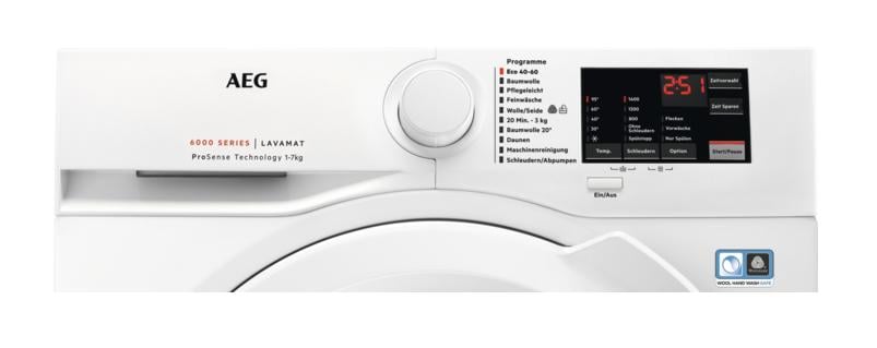 AEG L6FBG51470, Voorbelading, 7 kg, B, 74 dB, 1400 RPM, A