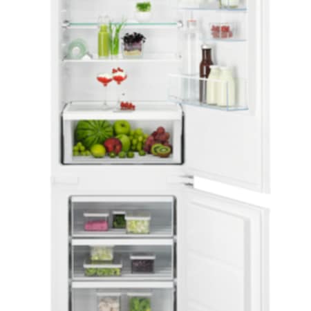 AEG TSC7G181ES. Totale nettocapaciteit: 216 l, Klimaatklasse: SN-ST, Geluidsniveau: 36 dB. Nettocapaciteit koelkast: 154 l, No Frost (koelkast), Koelkast binnenverlichting, Aantal planken koelkast: 6, Aantal groente lades: 1. Nettocapaciteit vriezer: 62 l, Vriescapaciteit: 7 kg/24u, No Frost (vriezer). Energie-efficiëntieklasse: G, Jaarlijks energieverbruik: 216 kWu. Kleur van het product: Wit