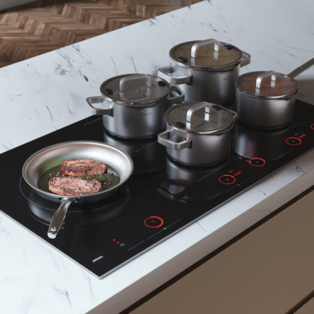 Door het slimme powermanagement in de inductie, garanderen wij als ATAG je altijd optimaal kookplezier. Zo kun je alle inductiekookplaten met Celsius°Cooking™ instellen op een beperkt afneembaar vermogen (1,2 of 3 fasen). Ook in die setting, ondanks de beperking in beschikbaar vermogen, zal het slimme powermanagement het vermogen daar geven waar jij dit wilt. Gaat dit niet, dan zal de bediening jou dit laten weten wanneer jij bepaalt wat er gebeurd.