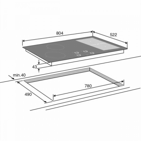 Afmeting (B x D) grote pit/kookzone 180 x 220 mm