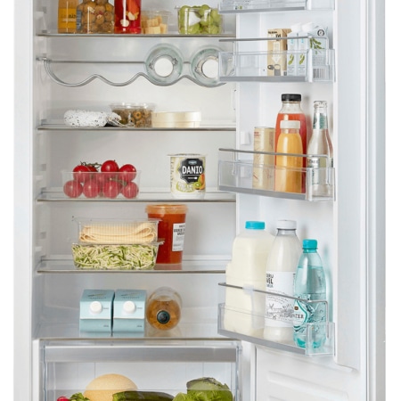 De koelkasten van ATAG zijn voorzien van luxe glazen draagplateaus die naar wens zijn in te delen. Verstel de hoogte van het plateau om een hoog object te plaatsen of verwijder een plateau om extra ruimte te creëren. Het RVS flessenrek zorgt voor extra opbergruimte voor flessen.