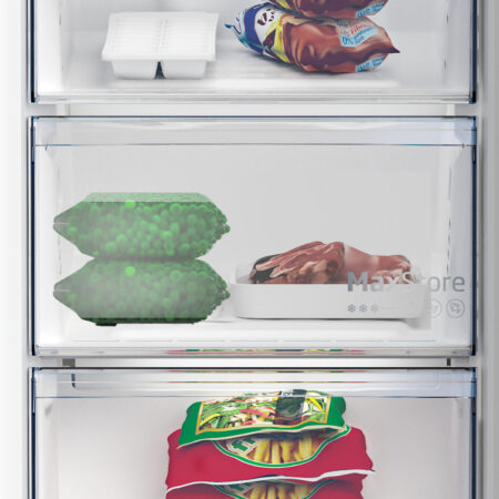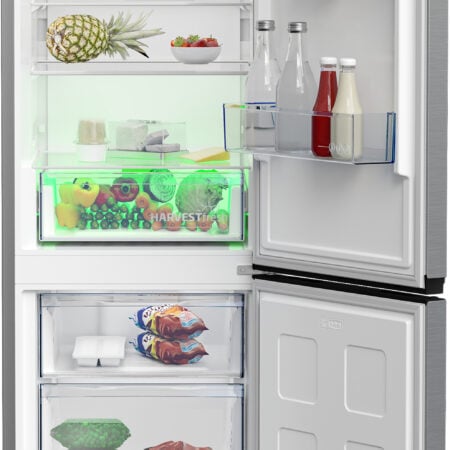 Beko B5RCNE366HXB1. Totale nettocapaciteit: 316 l. Deurscharnieren: Rechts. Klimaatklasse: SN-T, Geluidsniveau: 35 dB. Nettocapaciteit koelkast: 210 l, No Frost (koelkast), Koelkast binnenverlichting, Aantal planken koelkast: 4. Nettocapaciteit vriezer: 106 l, Vriescapaciteit: 6 kg/24u, No Frost (vriezer). Vers zone compartiment. Energie-efficiëntieklasse: C, Jaarlijks energieverbruik: 165 kWu. Kleur van het product: Metallic