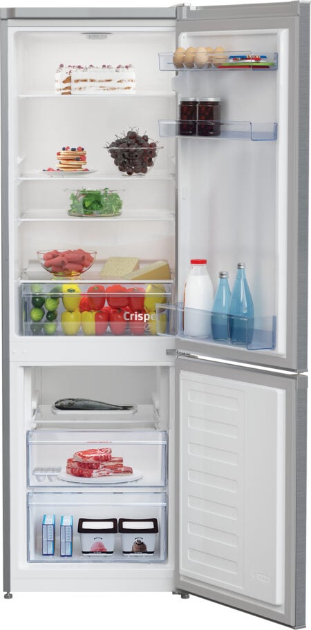 Beko RCSA270K40SN. Totale nettocapaciteit: 262 l. Deurscharnieren: Rechts. Klimaatklasse: SN-ST, Geluidsniveau: 38 dB. Nettocapaciteit koelkast: 175 l, Koelkast binnenverlichting, Aantal planken koelkast: 4, Aantal groente lades: 1. Nettocapaciteit vriezer: 87 l, Vriescapaciteit: 4 kg/24u. Energie-efficiëntieklasse: E, Jaarlijks energieverbruik: 220 kWu. Kleur van het product: Roestvrijstaal