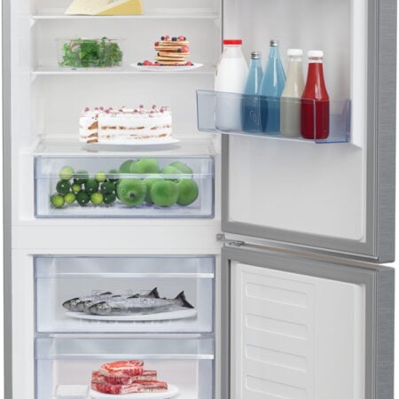 Beko RCSA366K40SN. Totale nettocapaciteit: 343 l. Deurscharnieren: Rechts. Klimaatklasse: SN-ST, Geluidsniveau: 38 dB. Nettocapaciteit koelkast: 223 l, Koelkast binnenverlichting, Aantal planken koelkast: 4, Aantal groente lades: 1. Nettocapaciteit vriezer: 120 l, Vriescapaciteit: 5,5 kg/24u. Energie-efficiëntieklasse: E, Jaarlijks energieverbruik: 243 kWu. Kleur van het product: Roestvrijstaal