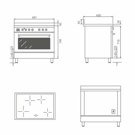 BORETTI CFBI901ZW Fornuis 90 cm – inductie fornuis – zwart