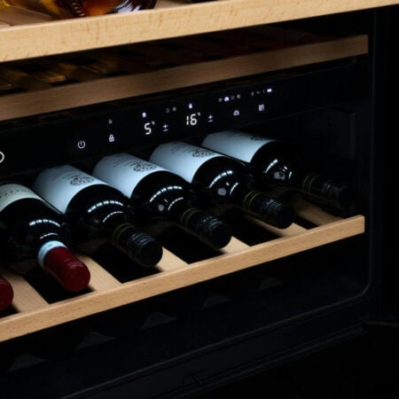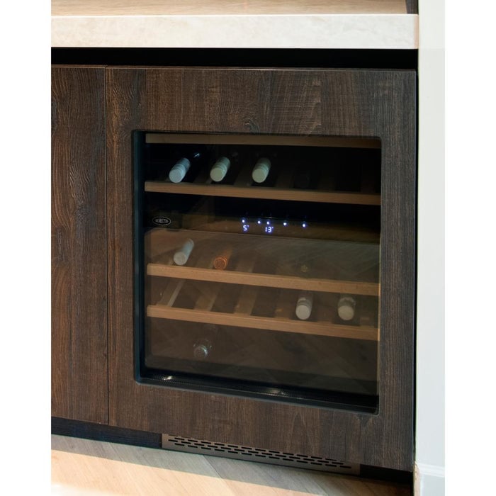 De deur van de wijnkoelkast is een isolatiedeur die beschikt over UV-bescherming. Dit zorgt ervoor dat er geen schadelijke UV-stralen de wijnklimaatkast binnendringen en de wijnen aantasten. Door de isolatiedeur is de temperatuur goed geïsoleerd is en wordt dus stroom bespaard. Dankzij de diepe plint is dit model heel gemakkelijk in te bouwen in een bestaande of nieuwe keuken. Ook door de toegankelijke maat is de wijnkast makkelijk te gebruiken als vrijstaande wijnkoelkast is een keuken of woonkamer.