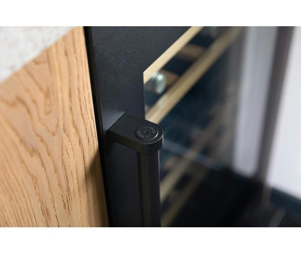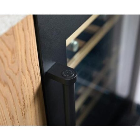 De deur wordt geopend met behulp van een handgreep. De lijst van de deur is van Mat antraciet glas en is ook verkrijgbaar in de variant van zwart glas. Verder beschikt de wijnkoelkast over een vibratiedemper, wat ervoor zorgt dat er geen schadelijke trillingen in de wijnkoelkast zijn. De wijnklimaatkast heeft verder de beschikking over een deuralarm, dit met het idee om de deur van de wijnkast niet onnodig lang open te hebben staan.