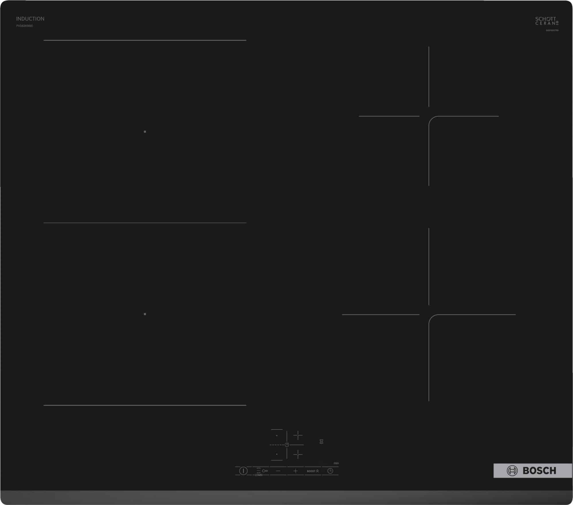 Bosch PVS63KBB5E, Zwart, Ingebouwd, Inductiekookplaat zones, Glaskeramiek, 4 zone(s), 4 zone(s)