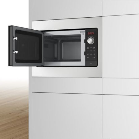 Bosch Serie 2 BFL523MS3B. Apparaatplaatsing: Ingebouwd, Type product: Solo-magnetron, Inhoud (binnenkant): 20 l, Magnetronvermogen: 800 W, Ingebouwd display, Type beeldscherm: LED, Soort bediening: Knoppen, Draaiknop, Touch, Kleur van het product: Zwart, Roestvrijstaal