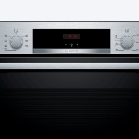 Bosch Serie 2 HBA513BS1. Grootte oven: Middelmaat, Soort oven: Elektrische oven, Totale binnen capaciteit (ovens): 71 l. Apparaatplaatsing: Ingebouwd, Kleur van het product: Roestvrijstaal, Soort bediening: Draaiknop, Touch. Soort klok: Elektronisch, Type timer: Digitaal. Energie-efficiëntieklasse: A, Energieverbruik (conventioneel): 0,97 kWu, Energieverbruik (geforceerde convectie): 0,81 kWu. Soort lamp: Halogeen