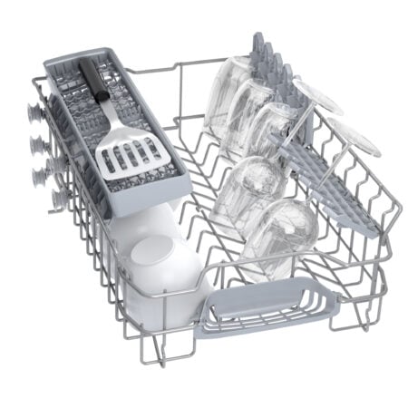 Bosch Serie 2 SPV2IKX10E. Apparaatplaatsing: Volledig ingebouwd, Productafmeting: Slimline (45 cm), Kleur bedieningspaneel: Zwart. Aantal couverts: 9 couverts, Geluidsemissieklasse: C, Geluidsniveau: 48 dB. Voetenverstelling: 6 cm, Bedieningsapps ondersteund: Siemens Home Connect. Energie-efficiëntieklasse: F, Waterconsumptie per cyclus: 9,5 l, Energieverbruik per 100 cycli: 78 kWu. Breedte: 448 mm, Diepte: 550 mm, Hoogte: 815 mm