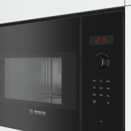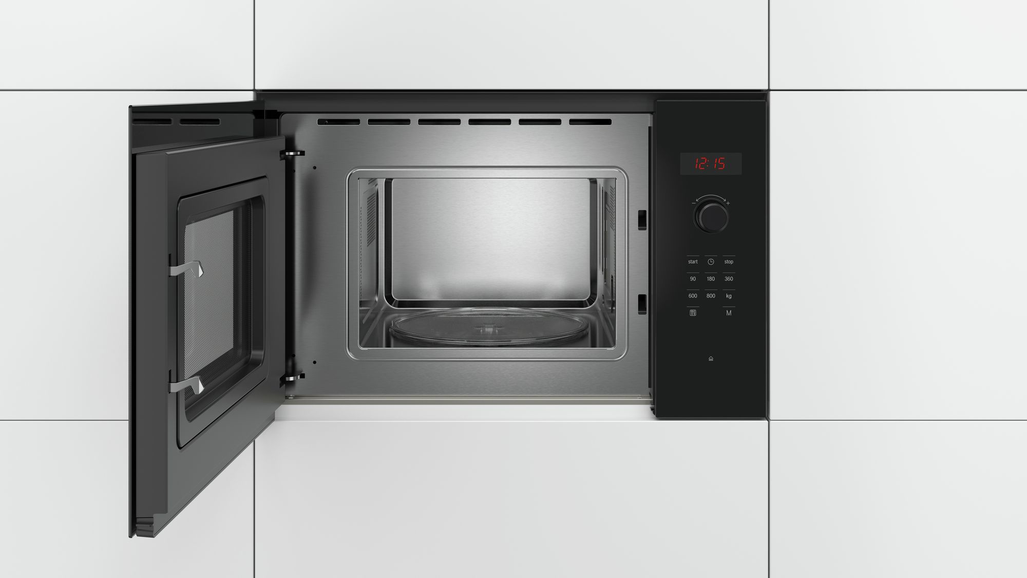 Bosch Serie 4 BFL523MB0B. Apparaatplaatsing: Ingebouwd, Type product: Solo-magnetron, Inhoud (binnenkant): 20 l, Magnetronvermogen: 800 W, Ingebouwd display, Type beeldscherm: LED, Soort bediening: Draaiknop, Touch, Kleur van het product: Zwart