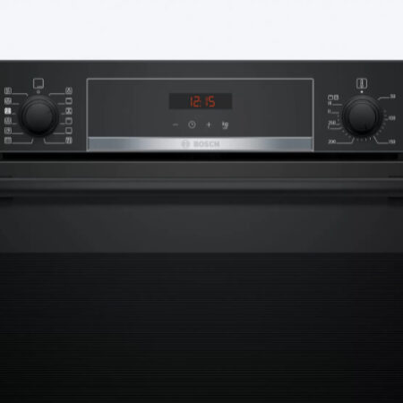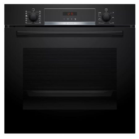 Bosch Serie 4 HRA574BB0. Grootte oven: Middelmaat, Soort oven: Elektrische oven, Totale binnen capaciteit (ovens): 71 l. Apparaatplaatsing: Ingebouwd, Kleur van het product: Zwart, Soort bediening: Draaiknop. Soort klok: Elektronisch. Energie-efficiëntieklasse: A, Energieverbruik (conventioneel): 0,99 kWu, Energieverbruik (geforceerde convectie): 0,81 kWu. Soort lamp: Halogeen