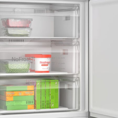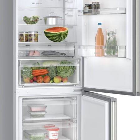 Bosch Serie 4 KGN492IAF. Totale nettocapaciteit: 440 l. Deurscharnieren: Rechts. Klimaatklasse: SN-T, Geluidsniveau: 29 dB. Nettocapaciteit koelkast: 311 l, No Frost (koelkast), Multi-luchtwegsysteem (koelkast), Koelkast binnenverlichting. Nettocapaciteit vriezer: 129 l, Vriescapaciteit: 11,5 kg/24u, No Frost (vriezer). Vers zone compartiment. Energie-efficiëntieklasse: A, Jaarlijks energieverbruik: 122 kWu. Kleur van het product: Roestvrijstaal