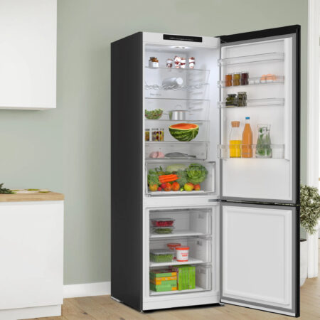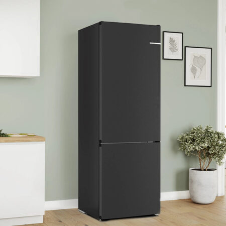 Bosch Serie 4 KGN492XCF. Totale nettocapaciteit: 440 l. Deurscharnieren: Rechts. Klimaatklasse: SN-T, Geluidsniveau: 35 dB. Nettocapaciteit koelkast: 311 l, No Frost (koelkast), Multi-luchtwegsysteem (koelkast), Koelkast binnenverlichting. Nettocapaciteit vriezer: 129 l, Vriescapaciteit: 11 kg/24u, No Frost (vriezer). Vers zone compartiment. Energie-efficiëntieklasse: C, Jaarlijks energieverbruik: 178 kWu. Kleur van het product: Zwart, Roestvrijstaal