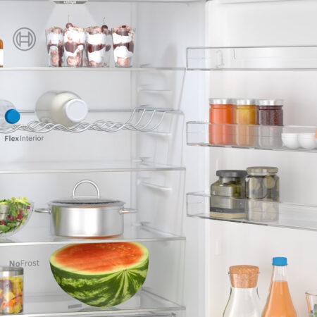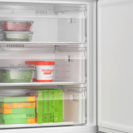 Bosch Serie 4 KGN49VXCT. Totale nettocapaciteit: 440 l. Deurscharnieren: Rechts, Type beeldscherm: LED. Klimaatklasse: SN-T, Geluidsniveau: 35 dB. Nettocapaciteit koelkast: 311 l, No Frost (koelkast), Multi-luchtwegsysteem (koelkast), Koelkast binnenverlichting. Nettocapaciteit vriezer: 129 l, Vriescapaciteit: 11 kg/24u, No Frost (vriezer). Energie-efficiëntieklasse: C, Jaarlijks energieverbruik: 178 kWu. Kleur van het product: Roestvrijstaal