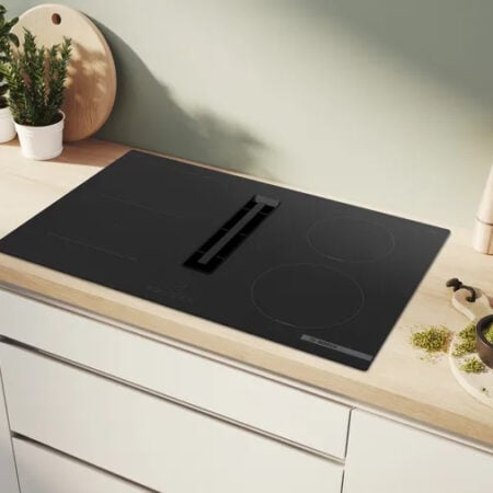 Bosch Serie 4 PVS811B16E. Kleur van het product: Zwart, Apparaatplaatsing: Ingebouwd, Breedte kookplaat: 80 cm. Soort bediening: Touch, Controle positie: Front / Top front, Type beeldscherm: LED. Maximale afzuigcapaciteit: 500 m³/uur, Geluidsniveau: 69 dB, Energie-efficiëntieschaal: A+++ tot D. Aangesloten lading (elektrisch): 7400 W, AC-ingangsspanning: 220 – 240 V, Energieverbruik: 178,3 Wh/kg. Breedte: 802 mm, Diepte: 522 mm, Hoogte: 223 mm