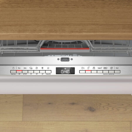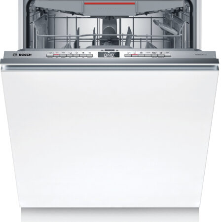 Bosch Serie 4 SMV4EVX01E. Apparaatplaatsing: Volledig ingebouwd, Productafmeting: Volledige grootte (60 cm), Kleur bedieningspaneel: Roestvrijstaal. Aantal couverts: 14 couverts, Geluidsemissieklasse: B, Geluidsniveau: 44 dB. Voetenverstelling: 6 cm, Bedieningsapps ondersteund: Bosch Home Connect. Energie-efficiëntieklasse: C, Waterconsumptie per cyclus: 9 l, Energieverbruik per 100 cycli: 75 kWu. Breedte: 598 mm, Diepte: 550 mm, Hoogte: 815 mm