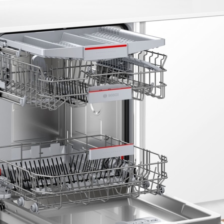 BoschBosch Serie 4 SMV4HVX32E, Volledig ingebouwd, Volledige grootte (60 cm), Wit, Zilver, Knoppen, 1,75 m
