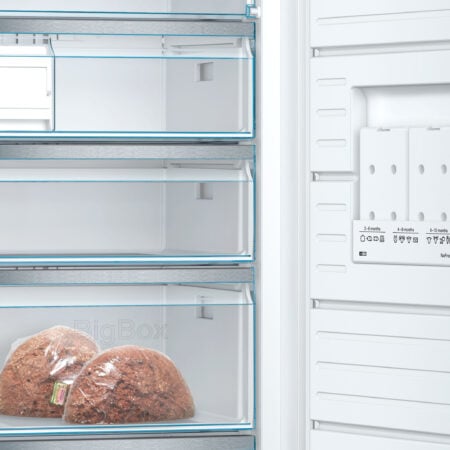 Bosch Serie 6 GSN54AWCV. Nettocapaciteit vriezer: 328 l, Klimaatklasse: SN-T, Vriescapaciteit: 23 kg/24u, Bewaartijd bij stroomuitval: 25 uur, Geluidsniveau: 38 dB, Aantal sterren: 4*, No Frost system. Deurscharnieren: Rechts. Soort lamp: LED. Energie-efficiëntieklasse: C, Jaarlijks energieverbruik: 170 kWu. Kleur van het product: Wit