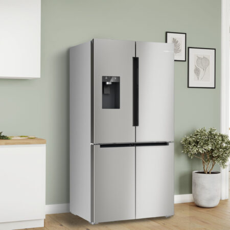 Bosch Serie 6 KFI96APEA. Apparaatplaatsing: Vrijstaand, Productontwerp: Multideur, Kleur van het product: Geborsteld staal. Totale nettocapaciteit: 574 l, Klimaatklasse: SN-T, Geluidsemissieklasse: C. Nettocapaciteit koelkast: 375 l, Soort lamp: LED. Nettocapaciteit vriezer: 199 l, Vriezer positie: Onder, Vriescapaciteit: 16 kg/24u. Snoerlengte: 2,4 m, Bedieningsapps ondersteund: Home Connect