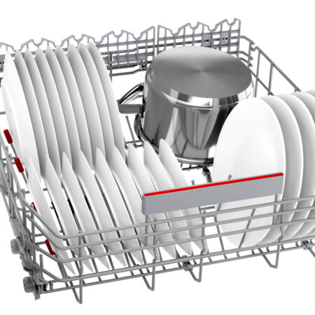 Bosch Serie 6 SMD6ECX57E. Apparaatplaatsing: Volledig ingebouwd, Productafmeting: Volledige grootte (60 cm), Deurkleur: Wit. Aantal couverts: 14 couverts, Geluidsemissieklasse: B, Geluidsniveau: 42 dB. Voetenverstelling: 6 cm. Energie-efficiëntieklasse: D, Waterconsumptie per cyclus: 9,5 l, Energieverbruik per 100 cycli: 85 kWu. Breedte: 598 mm, Diepte: 550 mm, Hoogte: 815 mm