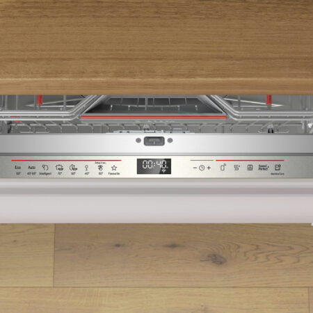Bosch Serie 6 SMV6ZCX06E. Apparaatplaatsing: Volledig ingebouwd, Productafmeting: Volledige grootte (60 cm), Kleur bedieningspaneel: Roestvrijstaal. Aantal couverts: 14 couverts, Geluidsemissieklasse: B, Geluidsniveau: 40 dB. Voetenverstelling: 6 cm, Bedieningsapps ondersteund: Bosch Home Connect. Energie-efficiëntieklasse: B, Waterconsumptie per cyclus: 9 l, Energieverbruik per 100 cycli: 65 kWu. Breedte: 598 mm, Diepte: 550 mm, Hoogte: 815 mm