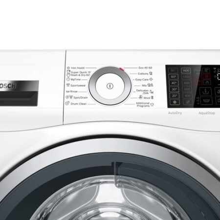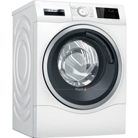 Bosch Serie 6 WDU8H541EU. Type lader: Voorbelading, Apparaatplaatsing: Vrijstaand, Kleur van het product: Wit. Droogcapciteit: 10 kg, Maximale centrifugesnelheid: 1400 RPM, Centrifuge-droger klasse: B. Snoerlengte: 2,1 m. Energie-efficiëntieklasse (wassen): C, Energie-efficiëntieklasse (wassen en drogen): E, Water verbruik wassen: 41 l. Diepte: 616 mm, Breedte: 598 mm, Hoogte: 848 mm