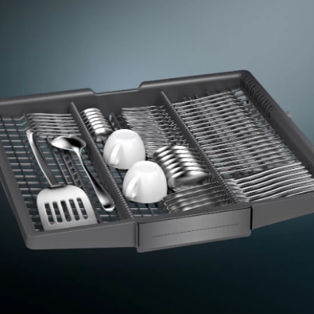 Siemens iQ500 SN65ZX49CN. Apparaatplaatsing: Volledig ingebouwd, Productafmeting: Volledige grootte (60 cm), Kleur bedieningspaneel: Zwart. Aantal couverts: 14 couverts, Geluidsemissieklasse: B, Geluidsniveau: 42 dB. Energie-efficiëntieklasse: C, Waterconsumptie per cyclus: 9,5 l, Energieverbruik per 100 cycli: 75 kWu. Breedte: 598 mm, Diepte: 550 mm, Hoogte: 815 mm
