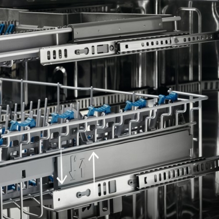 Vul of leeg uw vaatwasser gemakkelijk met de QuickLift-mand. Zelfs als de mand helemaal vol zit met volumineuze spullen, kun je met het QuickLift-systeem de hoogte aanpassen zodat je gemakkelijk bij je vaat kunt.