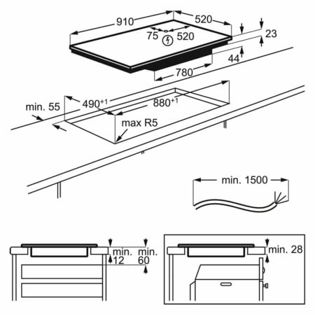 Afmetingen uitsparing (H x B x D) [mm]: 44x880x490